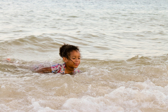 we went to the beach after dinner and had just planned to walk the shore line. Ava was so excited about the ocean she asked if she could get in. So I let her, in her clothes! It was fun. I got some of my most favorite pictures this night.