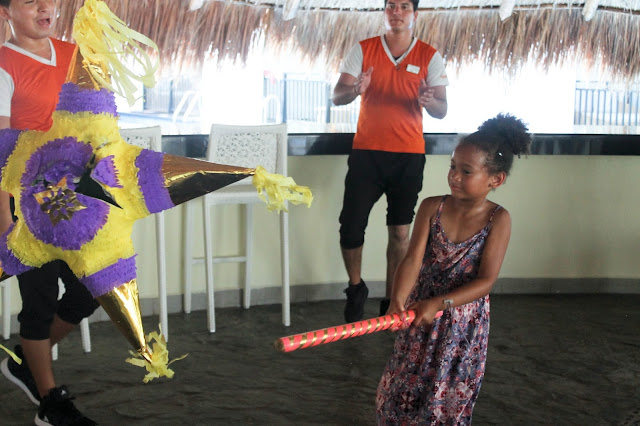 There was also a Kids Club. Ava asked to go there daily. The club did all sorts of fun stuff. They had face painting, cookie decorating, video games, trampoline, toys, crafts, etc. There was a daily meet & greet with different characters. One day Dora came and had a dance party and another day she came and read a story. They also would go to the pool and beach and have relays and play games. Each night there was a themed event. Ava attended a puppet show, movie night, and kids disco.